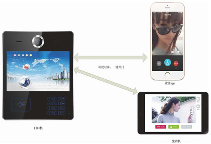 1.門口機(jī)呼叫,門口機(jī)呼叫業(yè)主app、室內(nèi)機(jī),依次呼叫室內(nèi)機(jī)、業(yè)主建立視頻通話。