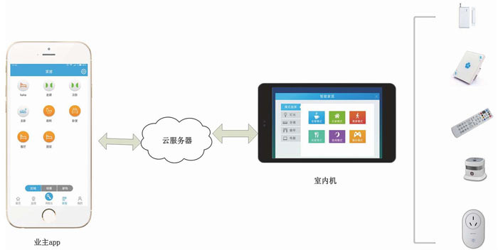 1.業(yè)主app控制開關(guān),點擊開關(guān)后,會通過云服務(wù)器通知給室內(nèi)機(jī),最后室內(nèi)機(jī)通過zigbee協(xié)議去控制一些可控開關(guān)。