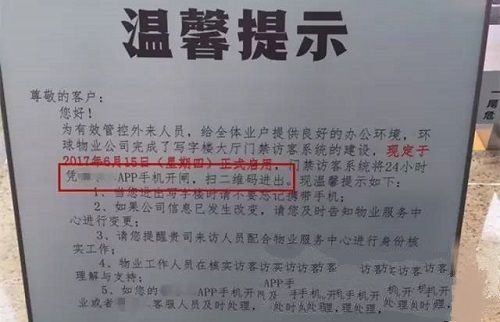 近日在成都便發(fā)生了一起“移動門禁擾人事件”:某區(qū)部署移動門禁,開啟APP進出時代。簡單地說便是要求住戶在進門前必須下載安裝APP,通過軟件掃碼進入,如以下告示所示: