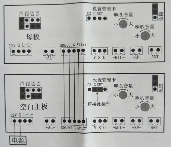 3 )系統(tǒng)接好線即可使用,主機(jī)和分機(jī)無須編碼;