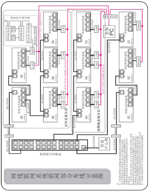 1、本系統(tǒng)聯(lián)網(wǎng)部分網(wǎng)線走線距離最遠(yuǎn)距離為700米。光纖走線距離不計(jì)算在內(nèi),如小區(qū)中最遠(yuǎn)的主機(jī)到網(wǎng)線路由器網(wǎng)線的走線距離如果不超過700米即可采用純網(wǎng)線的走線方式,超過700米即需要采用光纖走線方式。